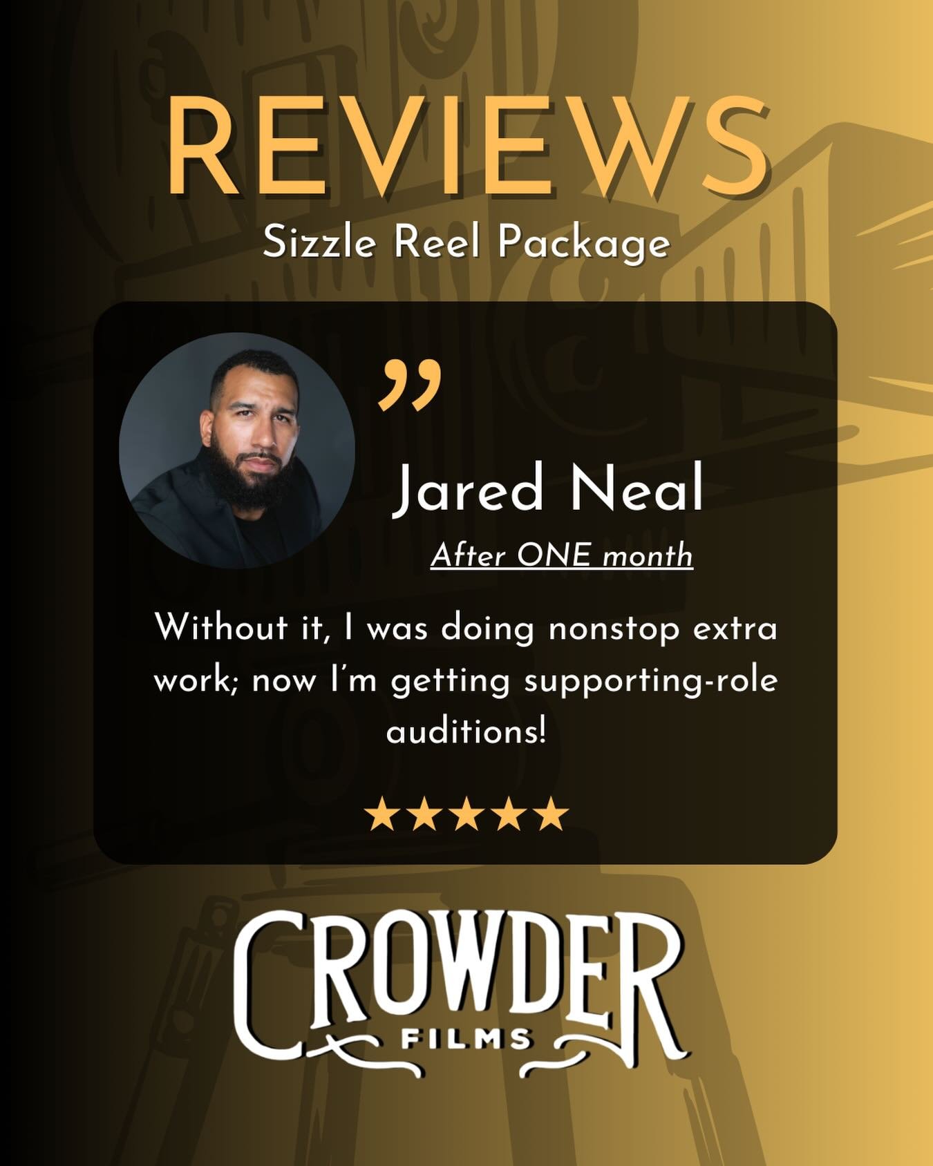 “I submitted for a pilot using my Acting Reel I got from Crowder Films, and got the audition. Got the call back and booked it!”